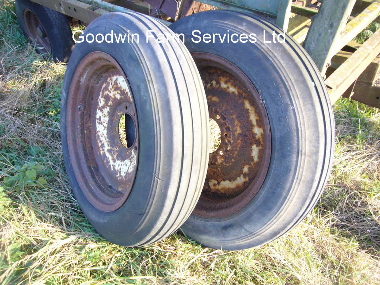 Pair of 750 x 24 8 stud wheels and tyres USED